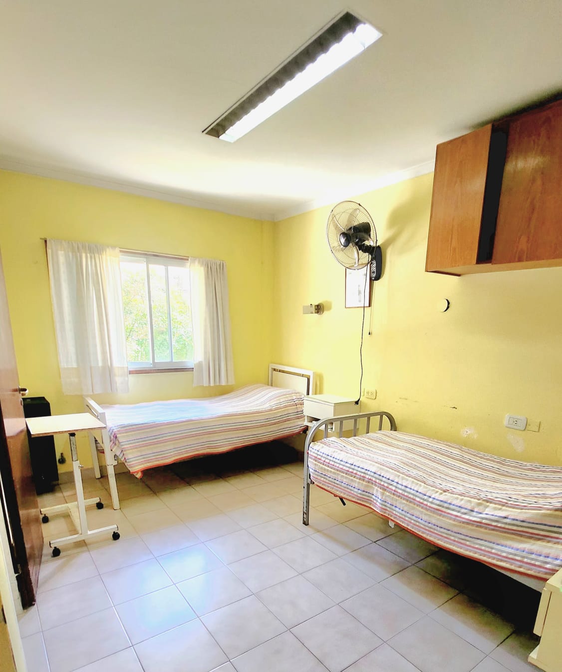 • 12 habitaciones con baño privado, calefacción y ventilador de techo. algunas con tv. Todas las habitaciones tienen ventanas a los jardines laterales y cuentan con camas con la altura requerida por eventual patología de cadera; Habilitado para 28 camas, lo cual post pandemia paso a 26, habitaciones individuales, para dos y tres personas. Los baños cuentan con todas las medidas de protección requeridas por el ministerio de salud.