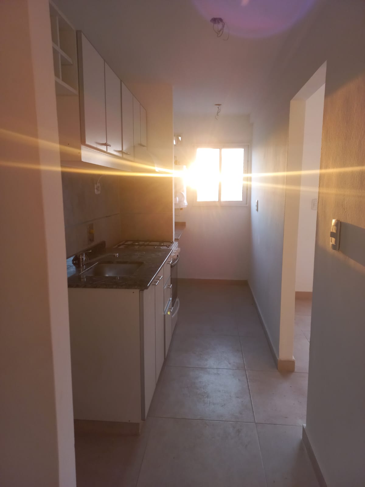 Cocina separada con muebles de bajo y sobre mesada.