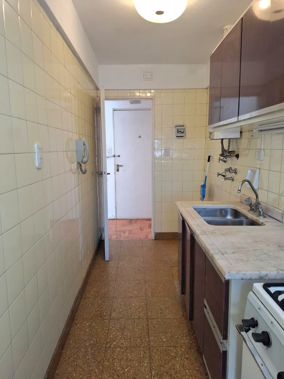 Distribución: living-comedor con salida al balcón, cocina aparte con muebles de bajo mesada y alacena. Lavadero. Habitación con placard, aire acondicionado y balcón francés al frente, baño completo con bañera.