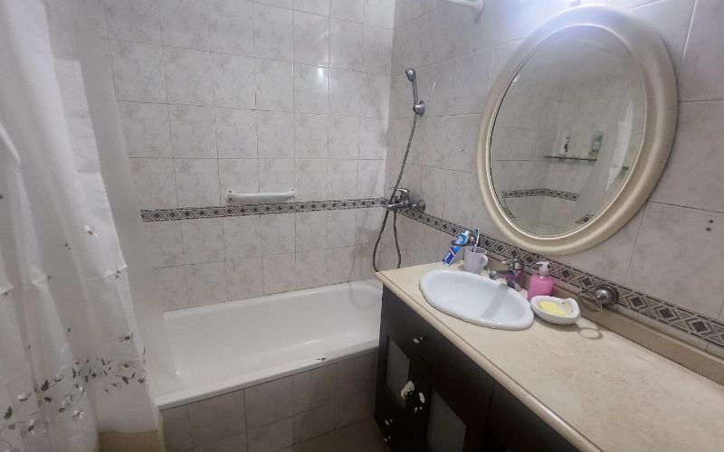 Hall distribuidor que te conduce a las dos habitaciones con placard y baño completo con bañera.