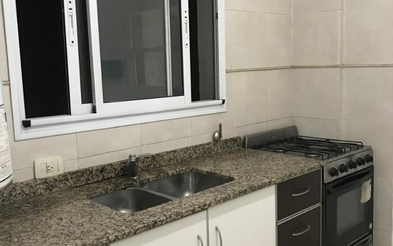 COCINA SEPARADA CON ARTEFACTO COCINA Y MUEBLES DE BAJO MESADA, PORTERO VISOR.