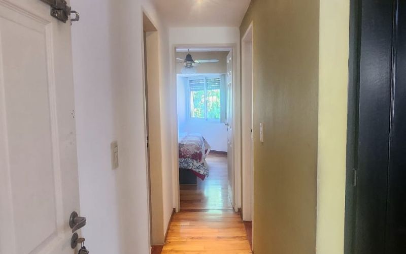 Hall distribuidor que te conduce a las dos habitaciones con placard y baño completo con bañera.